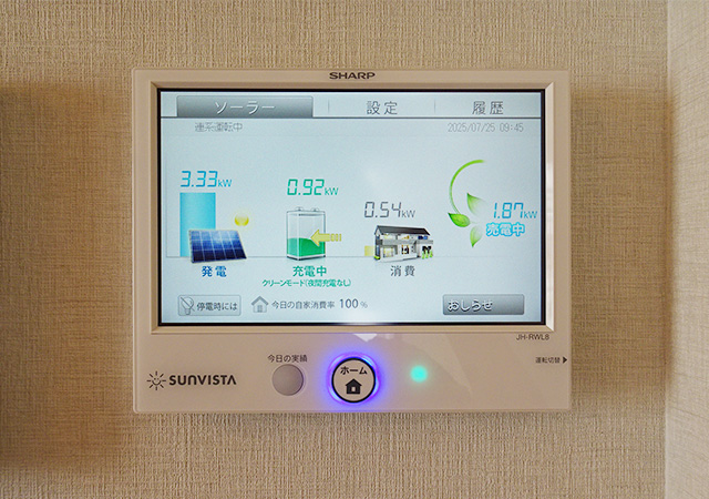 また、万一の停電も発電した電気や蓄電池にためた電気が使えるので安心です。
